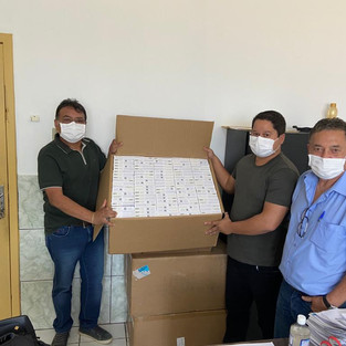 Na manhã deste dia O secretario Saimon Felipe recebeu Excelentíssimo Prefeito juntamente com Vereadores, Nego, Diogenes e secretario José Menezes, para a entrega dos Kits de teste rápido para Covid-19, ‘’NUTRIEX’’.